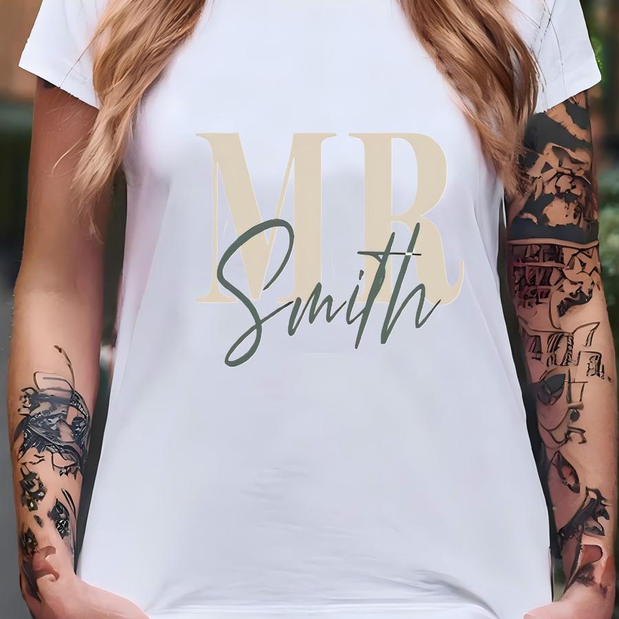 Mr And Mrs ® Shirt, Custom Wedding Date Shirt, Matching Honeymoon Gift, Bridal Party Shirts, Couple Wedding Morning Outfit T-shirt