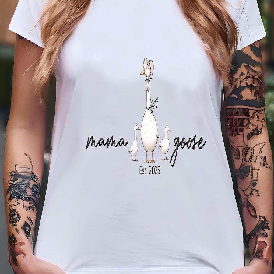 Personalized Mama Goose Sweater, Mom Sweatshirt With Est And Kids Name, Mama Silly Goose Shirt, Mother's Day Gift, Cute Pregnancy Reveal Tee T-shirt