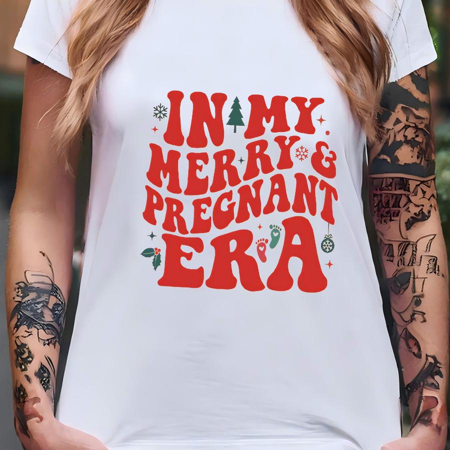 Merry Pregnant Era Shirt, Pregnancy Reveal Christmas Hoodie, Christmas Pregnancy Pooh Bear Shirt, Baby Announcement Shirt T-shirt