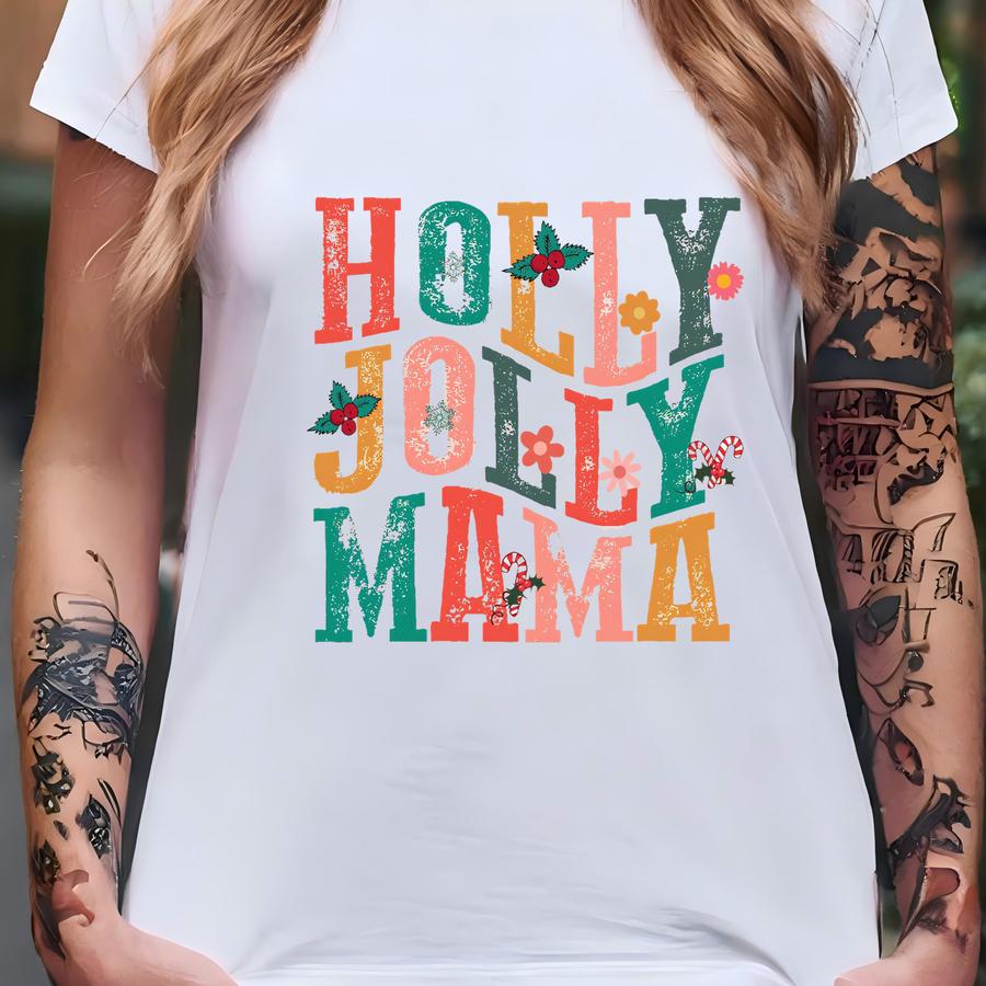 Holly Jolly Mama Sweatshirt, Mom Christmas Sweatshirt, Holly Jolly Mama Shirt, Retro Christmas Sweatshirt For Women, Vintage Xmas Sweater T-shirt