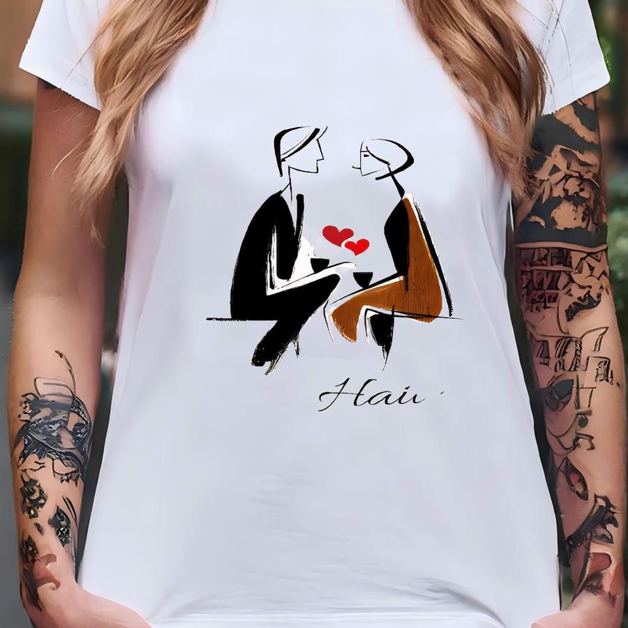 Personalized Couple Wine Tumbler - Minimalist Line Art With Hearts - Custom Name Gift For Anniversary, Wedding Or Valentines Day T-shirt