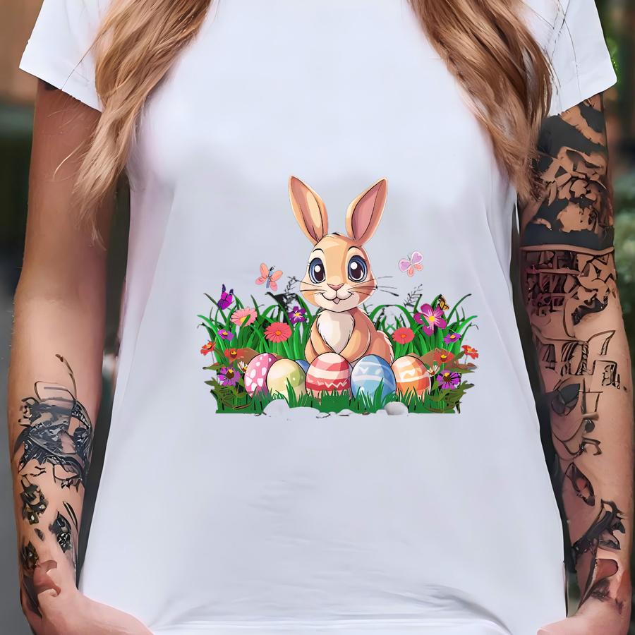 Easter Bunny Hoodie Unisex Happy Easter Tee Cute Spring Outfit Bunny With Eggs Gift For Adults T-shirt