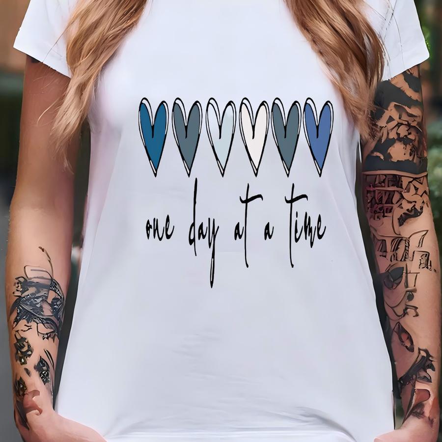 One Day At A Time Sweatshirt, Heart Crewneck, Recovery Gift For Her, Encouragement Hoodie, Inspirational Quotes Sweater, Mental Health Aware T-shirt