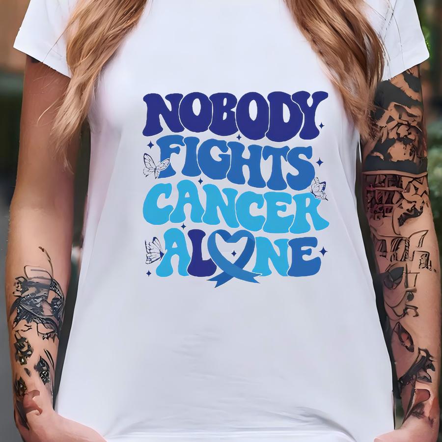 Nobody Fights Cancer Alone Shirt, Colon Cancer Awareness Shirt, Dark Blue Ribbon, Cancer Warrior Shirt, Family Cancer Support, Survivor Gift T-shirt