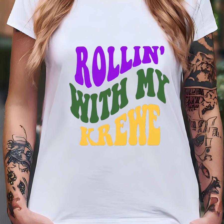 Mardi Gras Shirt, Mardi Gras Hoodie, Rollin' With My Krewe Mardi Gras Sweatshirt, Mardi Grass Festival Costume, New Orleans Mardi Gras Gift T-shirt