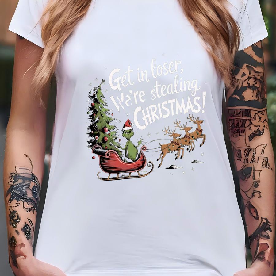 Get In Loser We're Stealing Christmas Shirt, Funny Christmas Shirt, Christmas Tree Shirt, Christmas Crewneck, Gift Christmas Crewneck Tee T-shirt