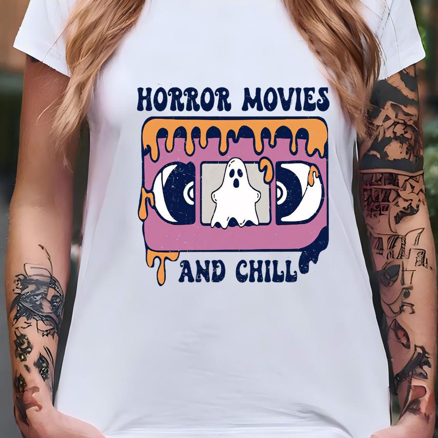 Horror Movies And Chill Sweatshirt, Halloween Shirt, Halloween Sweatshirt, Pumpkin Shirt, Ghost Shirt,fall Shirt, Retro Ghost,halloween Gift T-shirt