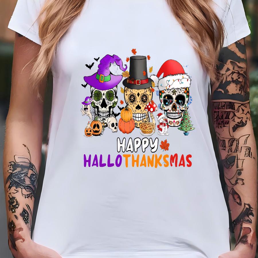 Happy Hallothanksmas Sweatshirt, Christmas Sweatshirt, Christmas Shirt, Halloween Sweatshirt, Thanksgiving Sweatshirt, Christmas Gift T-shirt