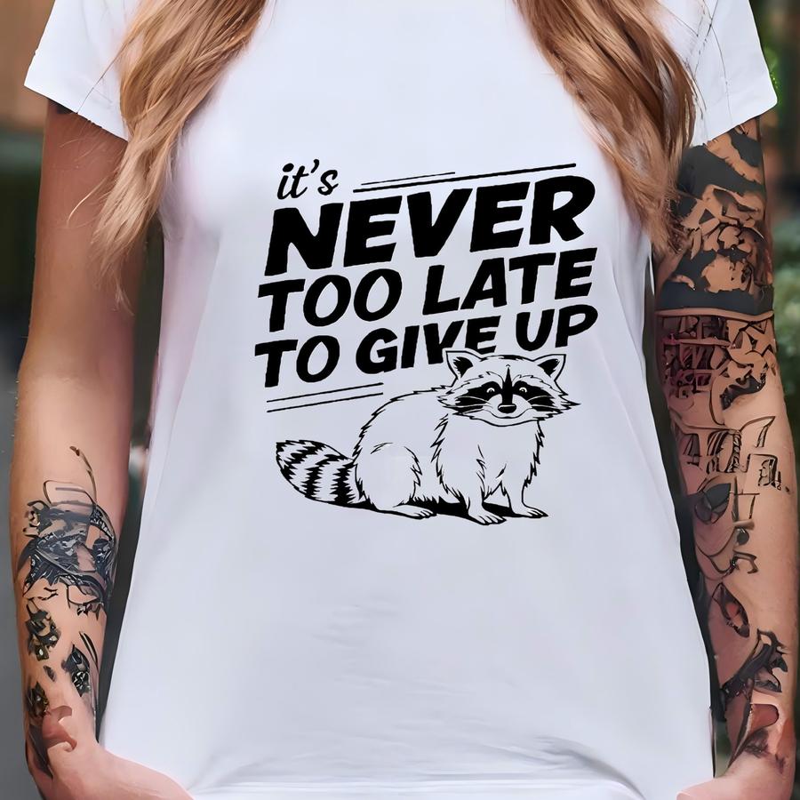 It's Never Too Late To Give Up Sweatshirt, Vintage Drawing Sweatshirt, Raccoon Sweatshirt, Sarcastic Sweat, Unisex Funny Sweatshirt T-shirt