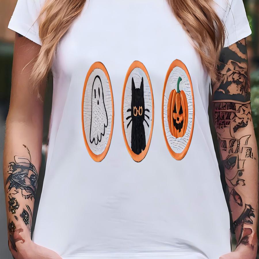 Halloween Sweatshirt: Ghost, Cat, Pumpkin Crewneck T-shirt