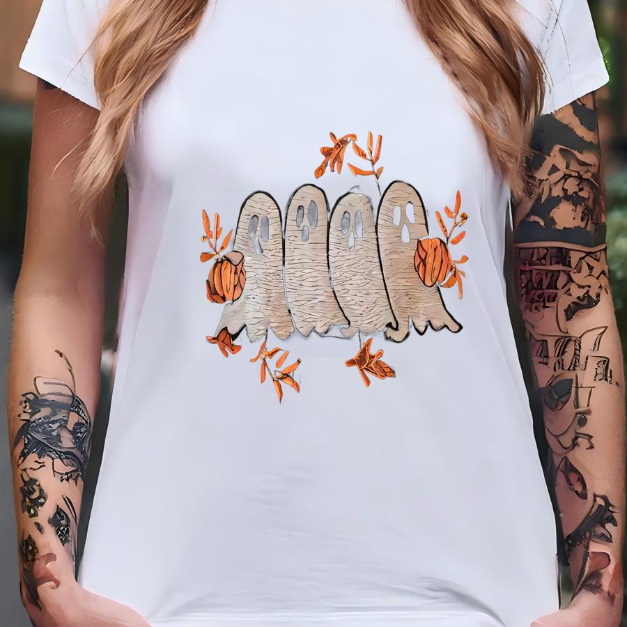 Ghost Fall Sweatshirt, Ghost Pumpkin Hoodie, Spooky Season Shirt, Halloween Lover Gifts, Ghost And Pumpkin Crewneck T-shirt