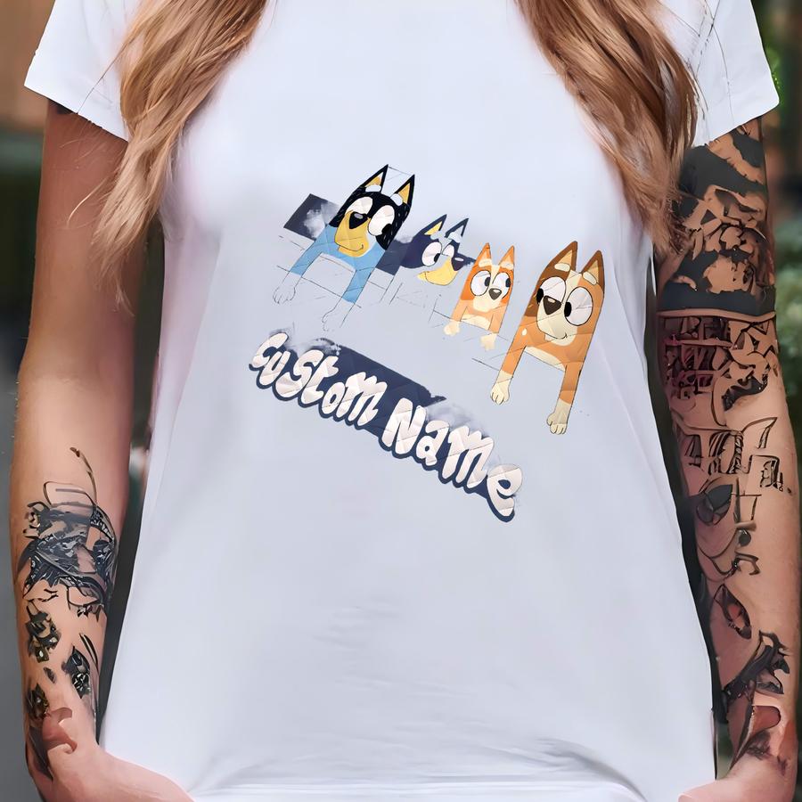 Personalized Bluey Quilt Bedding Set, Custom Name Bluey Family Quilt Blanket Pillowcases, Mom And Dad Bluey Quilt, Bluey Birthday Gift T-shirt