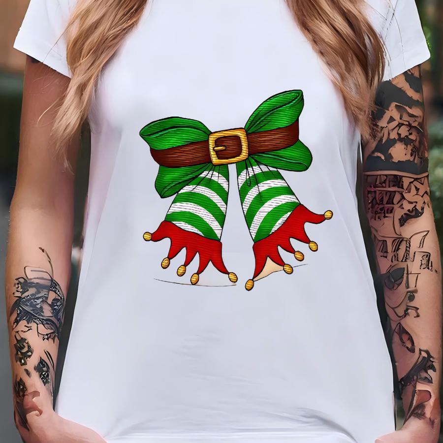 Personalized Elf Christmas Side Bow Cut-out Sweatshirt, Custom Elf Bow Sweatshirt, Elf Sweater, Holiday Gift For Women, Girls T-shirt