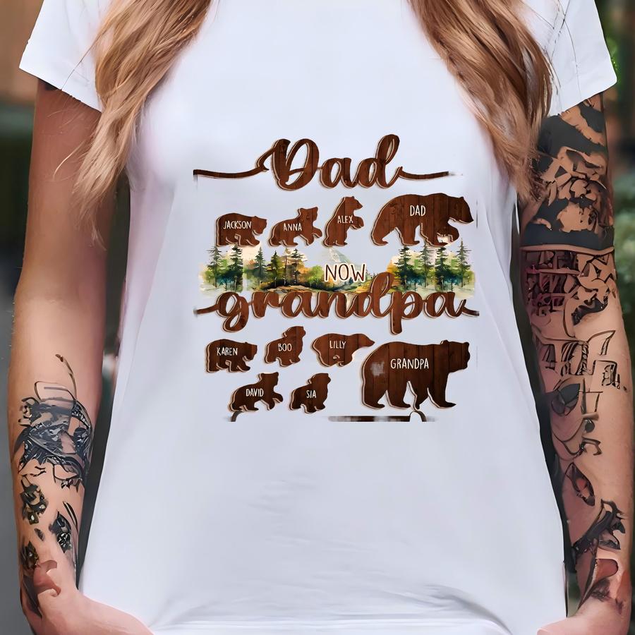 Personalized Papa Bear Sign With Kids Name, Custom First Dad Now Grandpa Sign, Custom Father's Day Gift, Gift For Dad, New Grandpa Gift T-shirt
