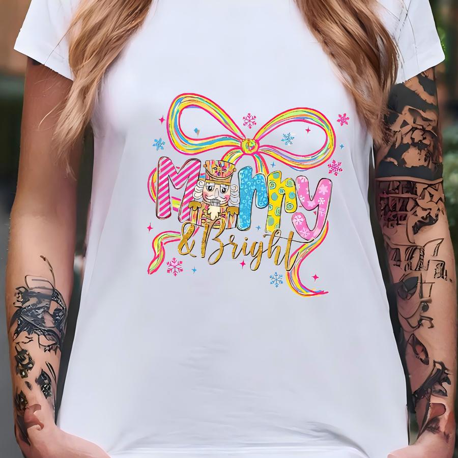 Festive Crewneck | Womens Graphic Hoodie Gift | Groovy Nutcracker Merry Bright Christmas Shirt | Holiday Aesthetic Sweatshirt T-shirt