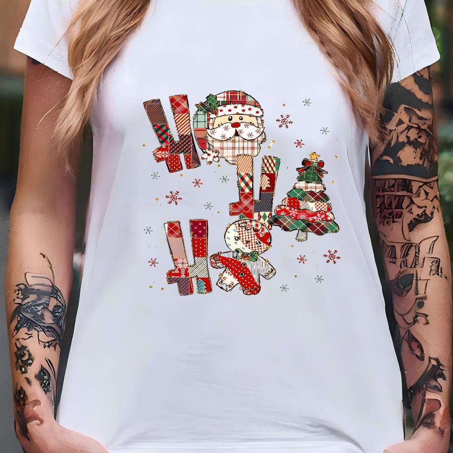 Patchwork Ho Ho Ho Shirt - Santa Gingerbread Christmas Sweatshirt - Holiday Hoodie - Rustic Xmas Graphic Tee - Farmhouse Print Gift T-shirt