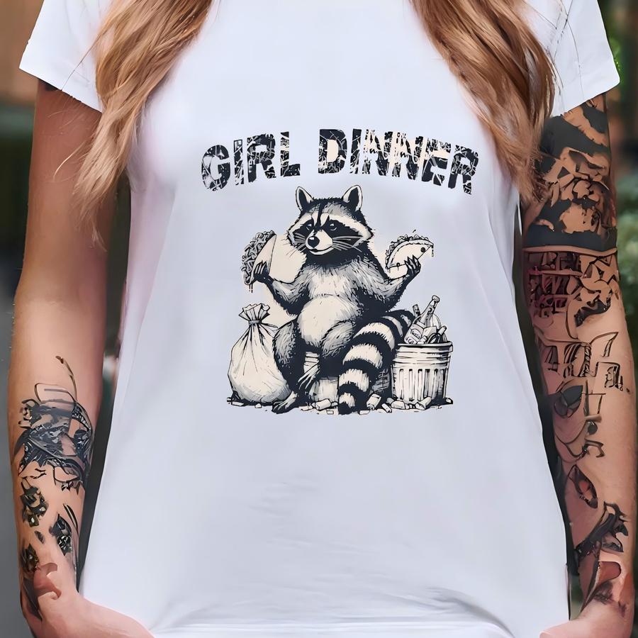 Girl Dinner Racoon Hoodie: Funny Wild Animal Lover Tee T-shirt
