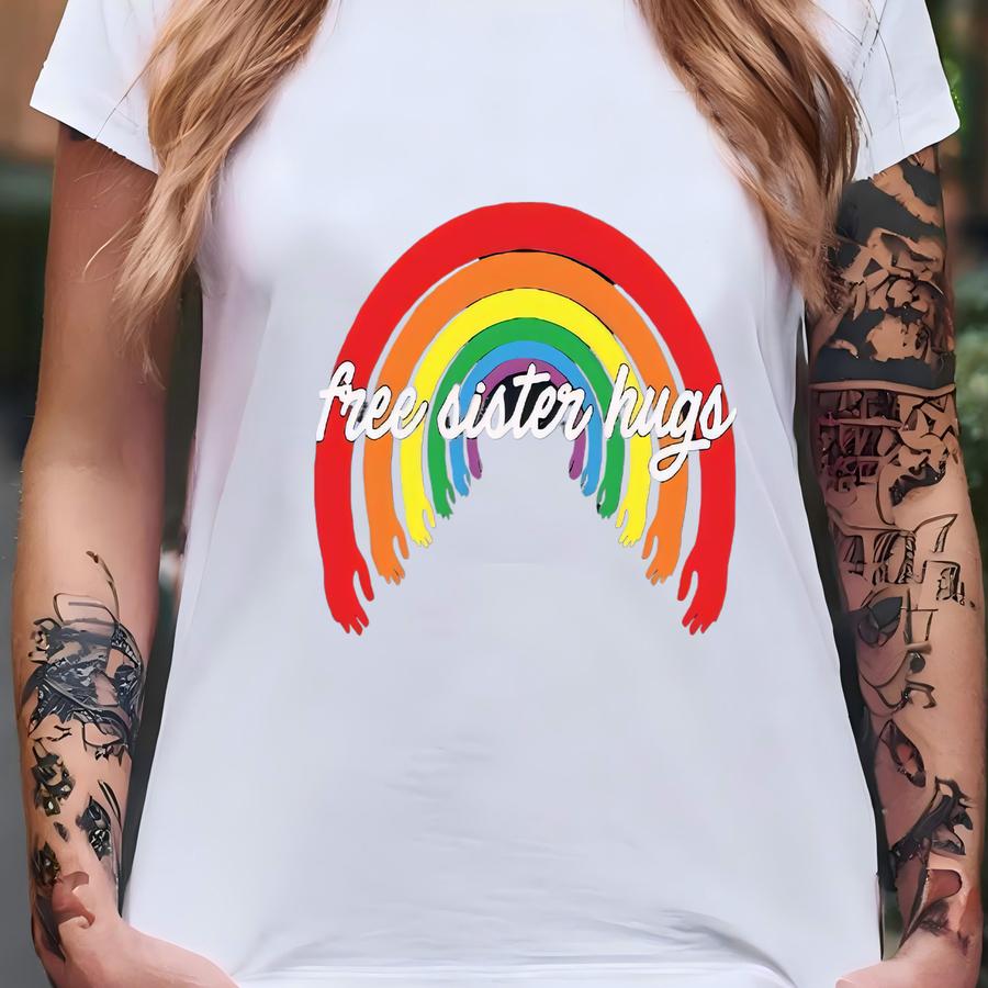 Lgbt Pride Rainbow Shirt: Retro Free Hugs Graphic Tee T-shirt