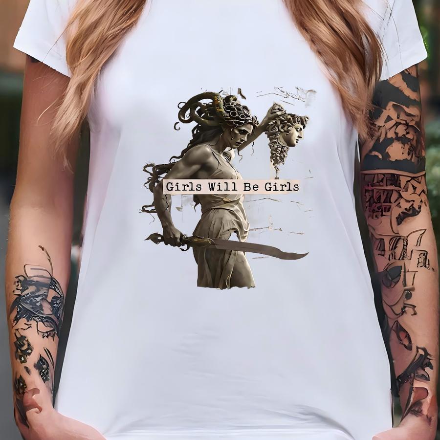 Girls Will Be Girls T Shirt, Medusa With The Head Of Perseus Tee, Shirt, Women's Empowerment Shirt, Feminism Shirt, Gift For Her T-shirt