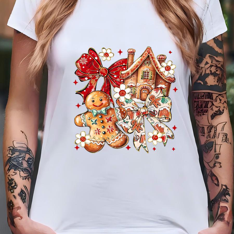 Gingerbread Christmas Shirt, Christmas Shirt, Gingerbread T Shirt, Christmas Bow Shirt, Christmas House Shirt, Retro Christmas Cookie Shirt T-shirt