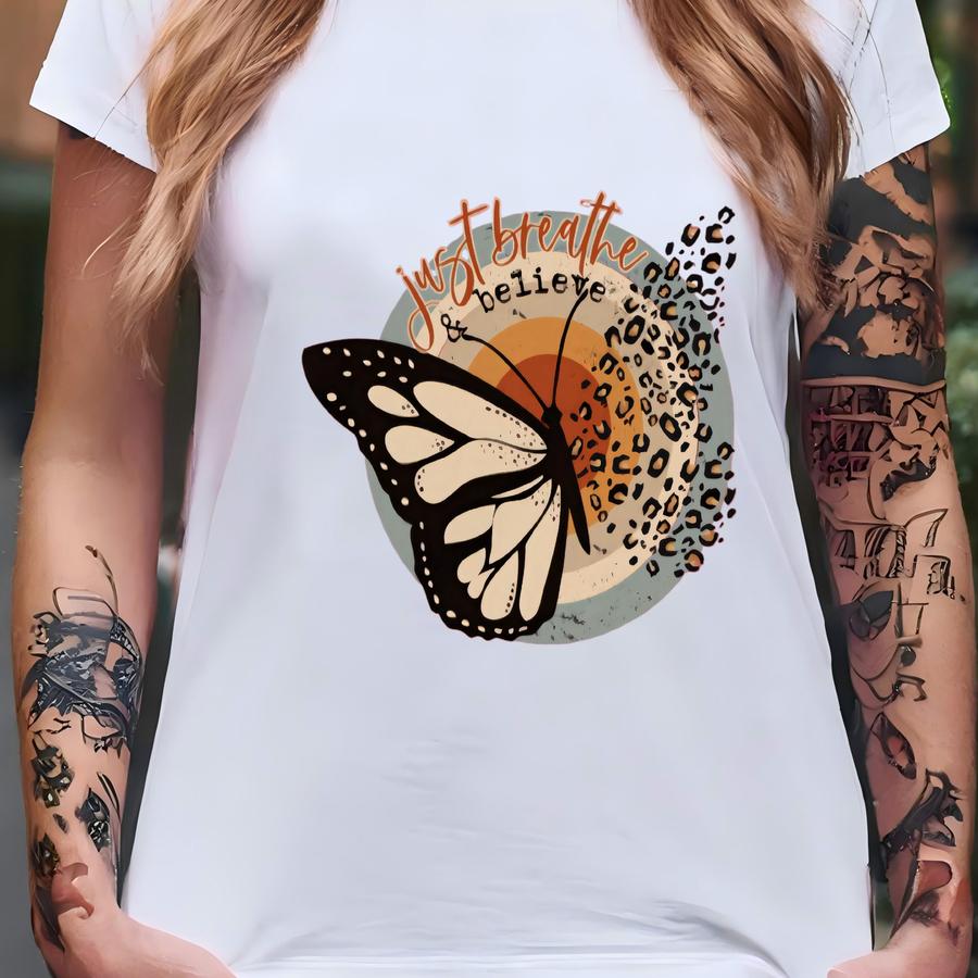 Just Breathe Butterfly Screen Print Hoodie, Butterfly Shirt, Inspirational Saying Graphic Tee, Butterfly Lover Gift, Gift For Her T-shirt