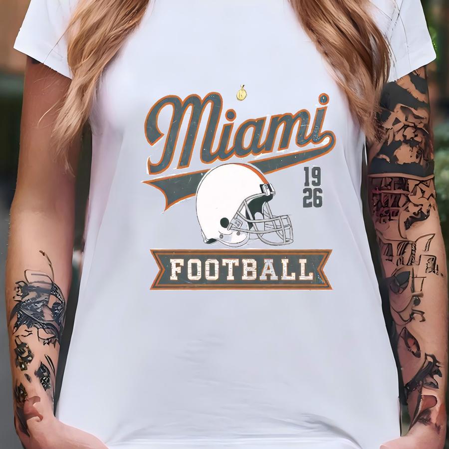 Miami Football Retro College Crewneck, Vintage Style Football Sweatshirt, Game Day Apparel, College Gift For Football Fan T-shirt
