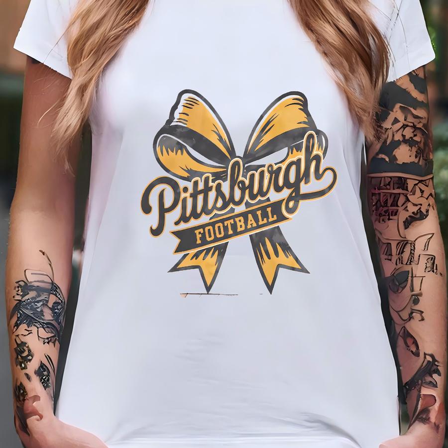 Pittsburgh Football Sweatshirt, Pittsburgh Shirt Croquette Bow Style Unisex Crewneck, Pittsburgh Game Day Sweatshirt For Football Fan Sport T-shirt