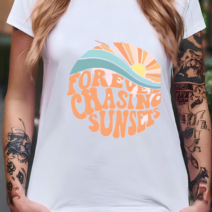 Forever Chasing Sunsets Hoodie: Beach Graphic Print T-shirt