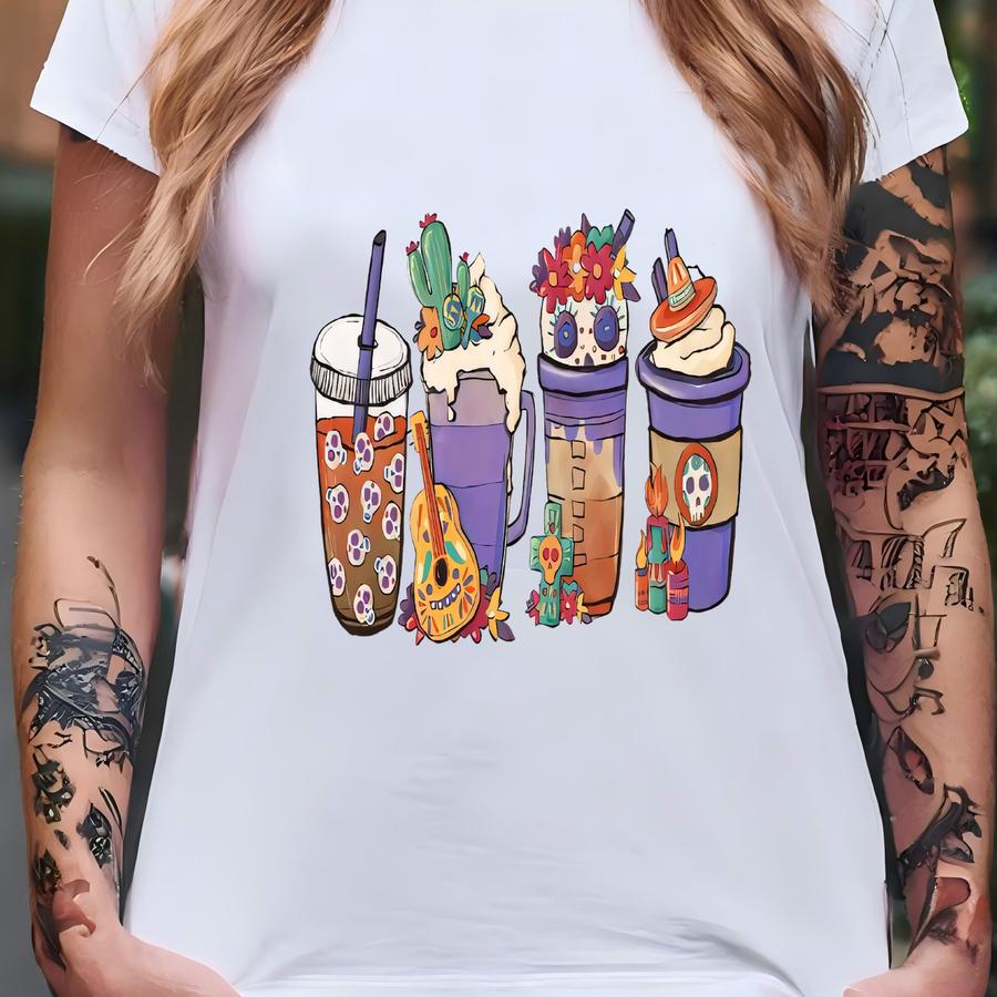 Dia De Los Muertos Coffee Cup Tee - Sugar Skull Halloween Shirt T-shirt
